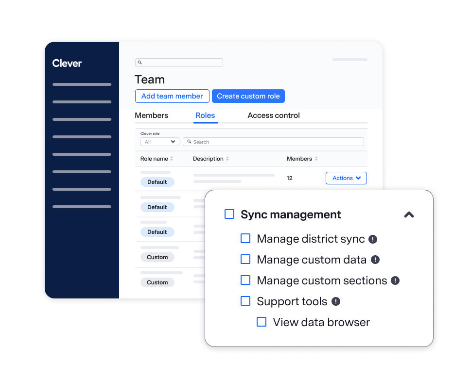 The Update: Districts with large quantities of staff inherently see greater complexity when it comes to access requirements. That’s why Clever now lets you define and enforce least privilege with extensive role-based access controls. New planned features will let you scope custom permissions by both school and application. We’ll also support a custom permission to impersonate admins and school tech leads (STLs).