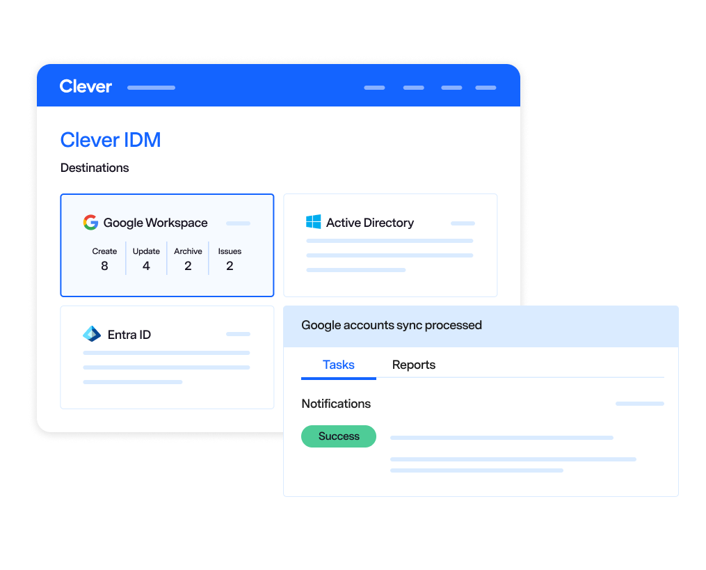 Simple, automated account provisioning and identity management starts with Clever. Create and maintain secure access to digital identities for students, teachers, and staff synced from your information systems.