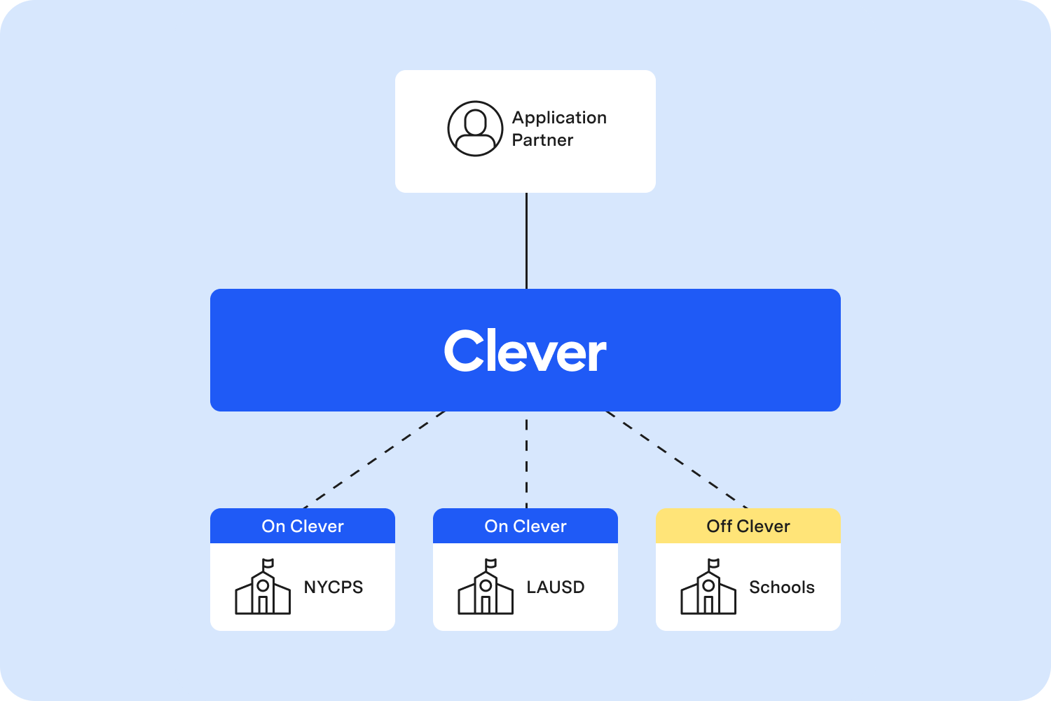 Districts already trust Clever. By integrating with us, you benefit from our existing relationships and infrastructure, which shortens sales cycles and gets you to market faster. With 95 of the top 100 districts and 77% of U.S. schools using our platform, your team can focus on growth while we handle the technical relationships.